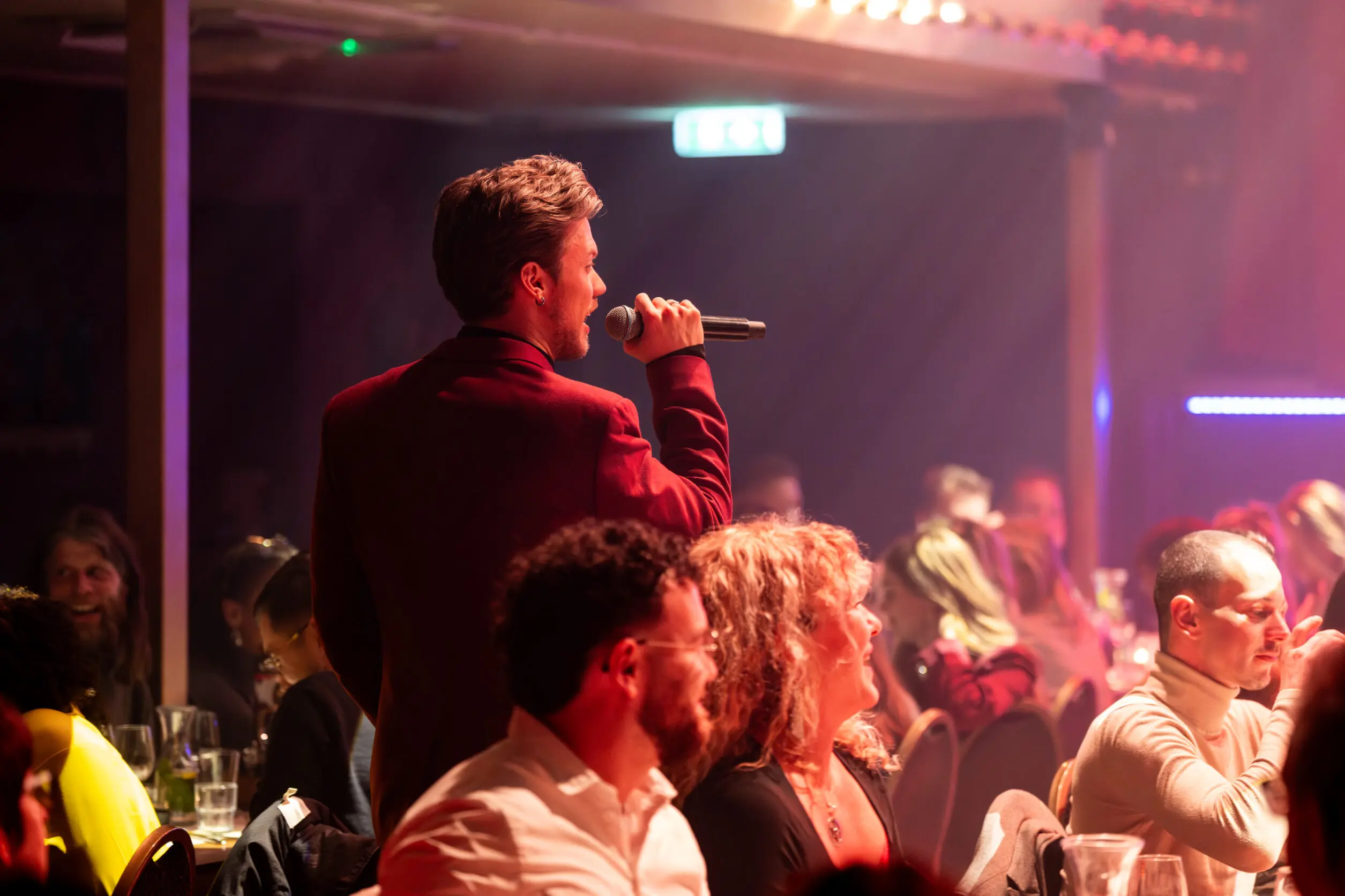 Terwijl je geniet van een feestelijk viergangendiner, word je ondergedompeld in een avond vol zang, dans en verhalen die raken. Samen beleven we de ultieme kerstsfeer: gezellig, feestelijk en onvergetelijk.