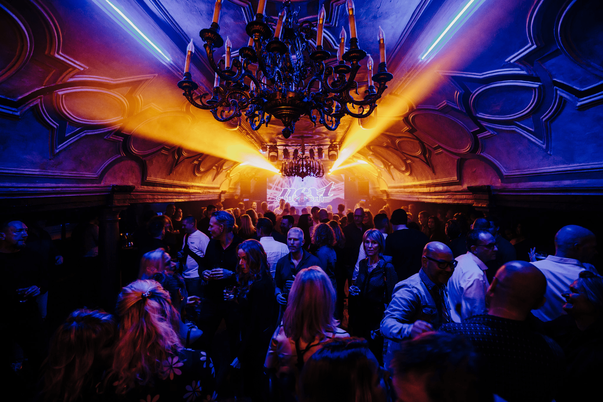 In een intieme clubsetting rondom de DJ?